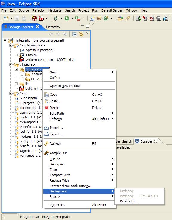 - Open Eclipse, and right click on the integratx.ear directory in the created